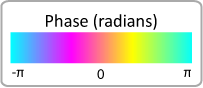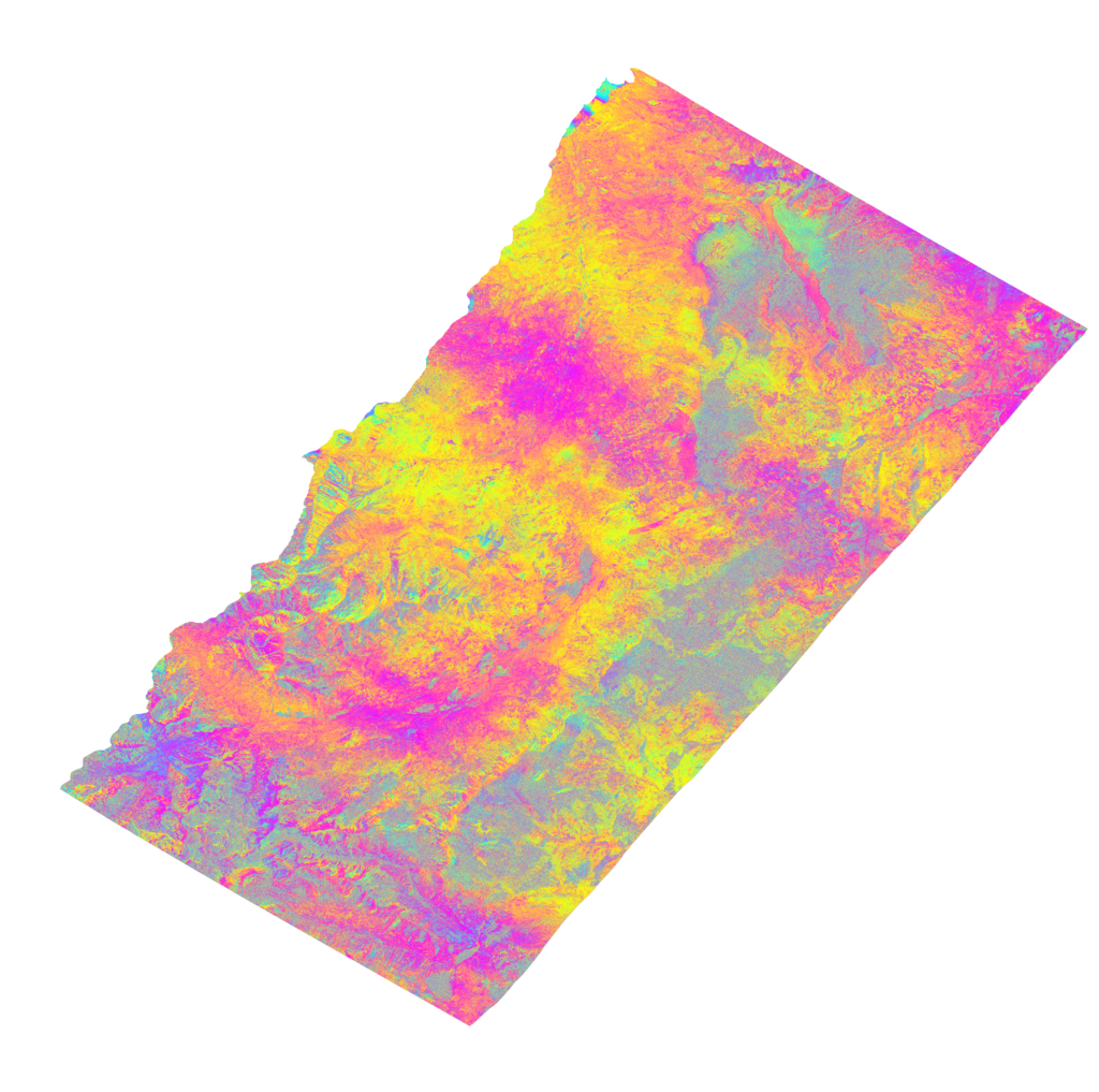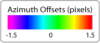 | Example of ampcor azimuth offsets with aircraft motion (blue streaks): | Corresponding interferogram phase with banding caused by aircraft motion (magenta banding): |