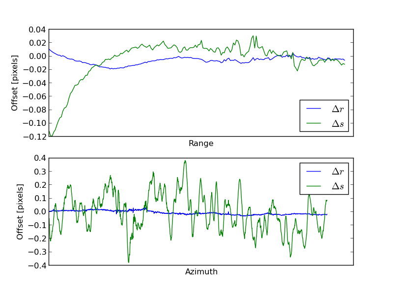 Profiles of the relative image registration offsets. The two-dimensional