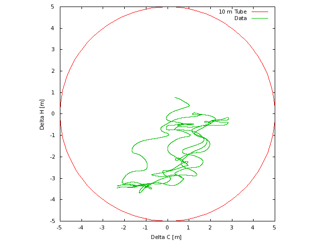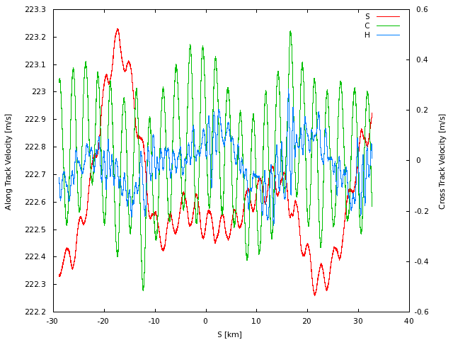 velocity (S), while the right axis measures cross-track (C) and vertical (H)